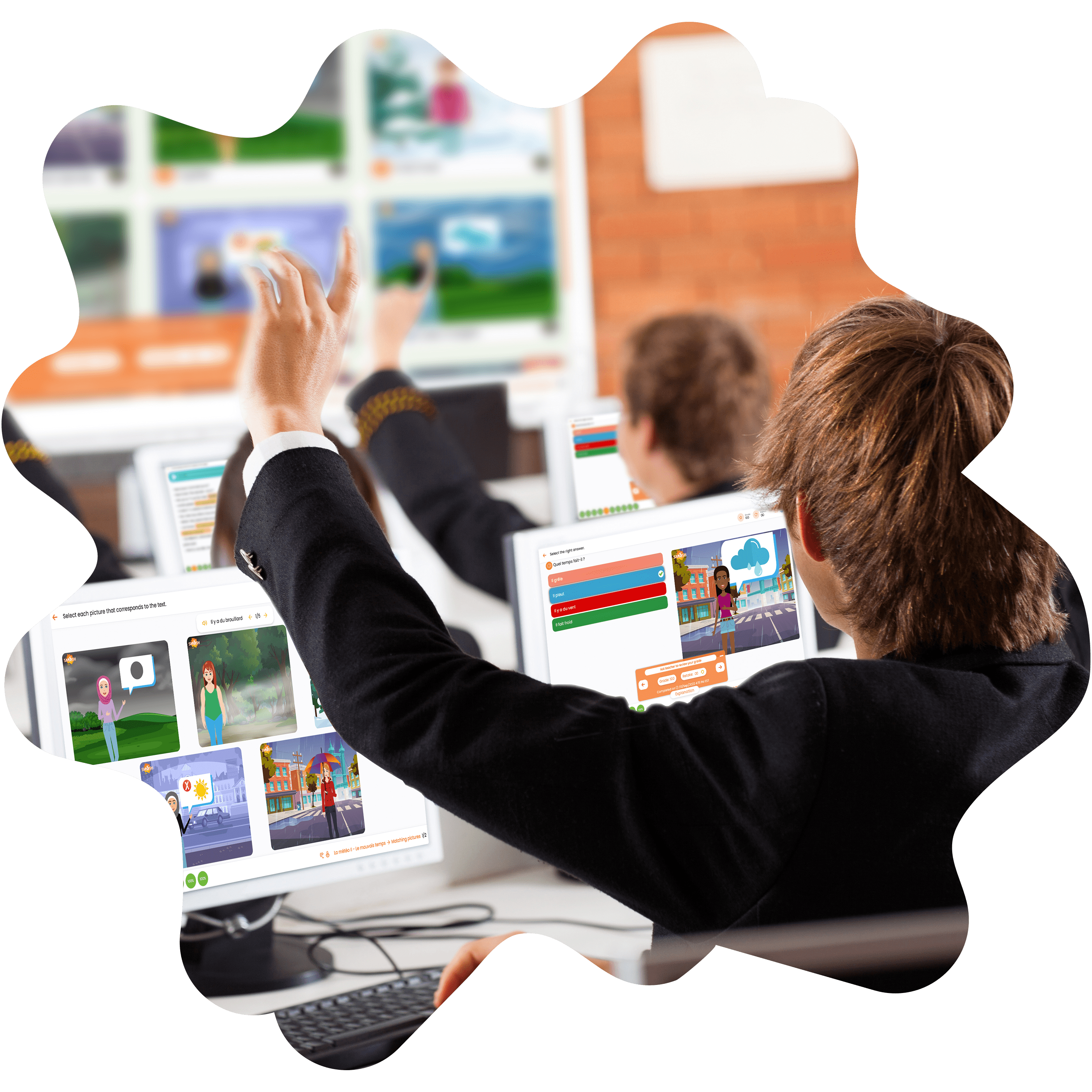 With Smash, you are in the capable hands of teachers and experts in French acquisition. Whether Core or French Immersion curriculum from grade 1 to grade 12, or the CEFR levels A1 to B2, you will always find professional lessons planned for you with vocabulary, grammar and native-speaker conversations supplemented with games, culture, songs and much more. You can choose from: