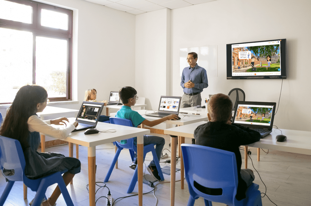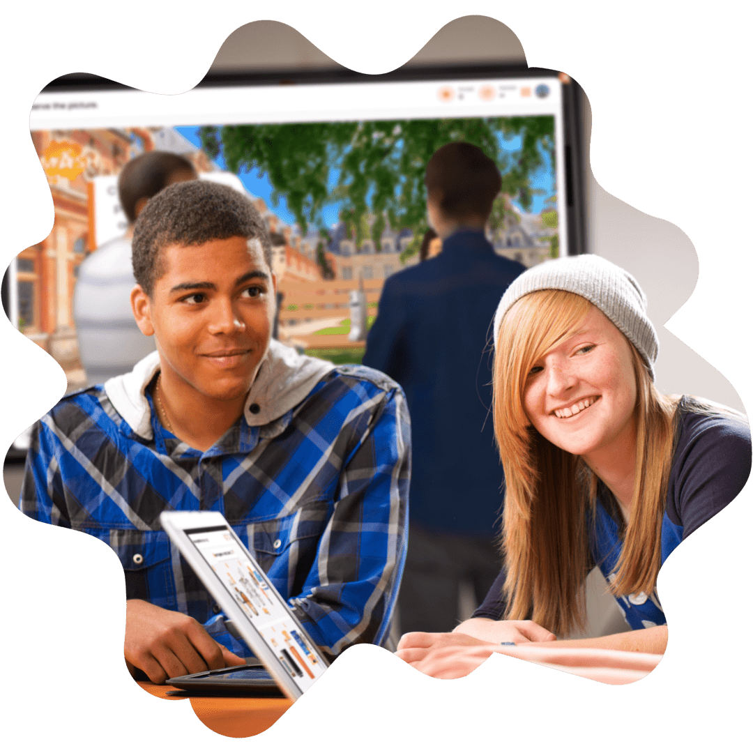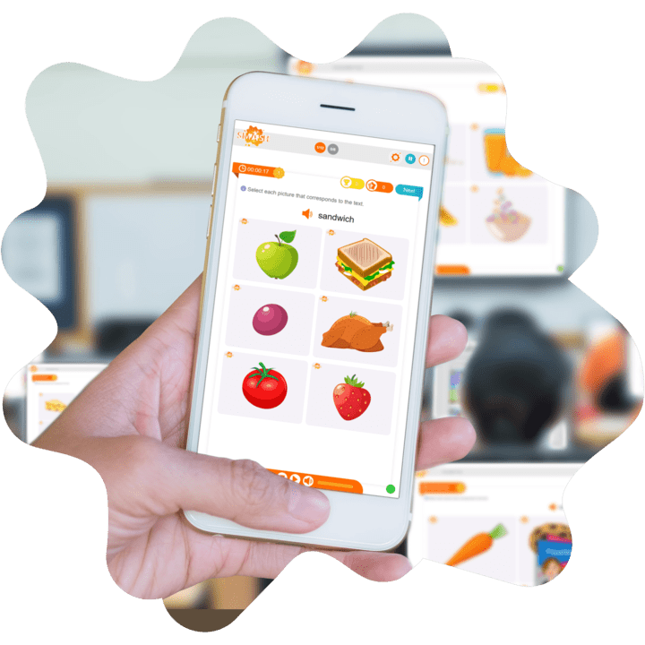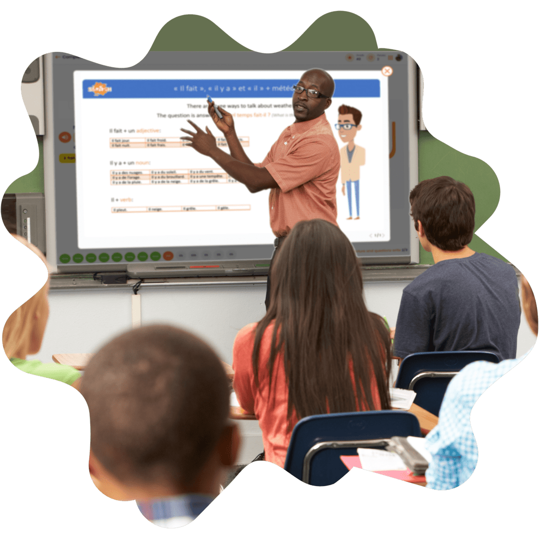 Smash enhances traditional classroom settings with interactive games and a scaffolded immersion approach to learning, aiding in fluency while saving teachers' time with ready-to-use lessons and activities.