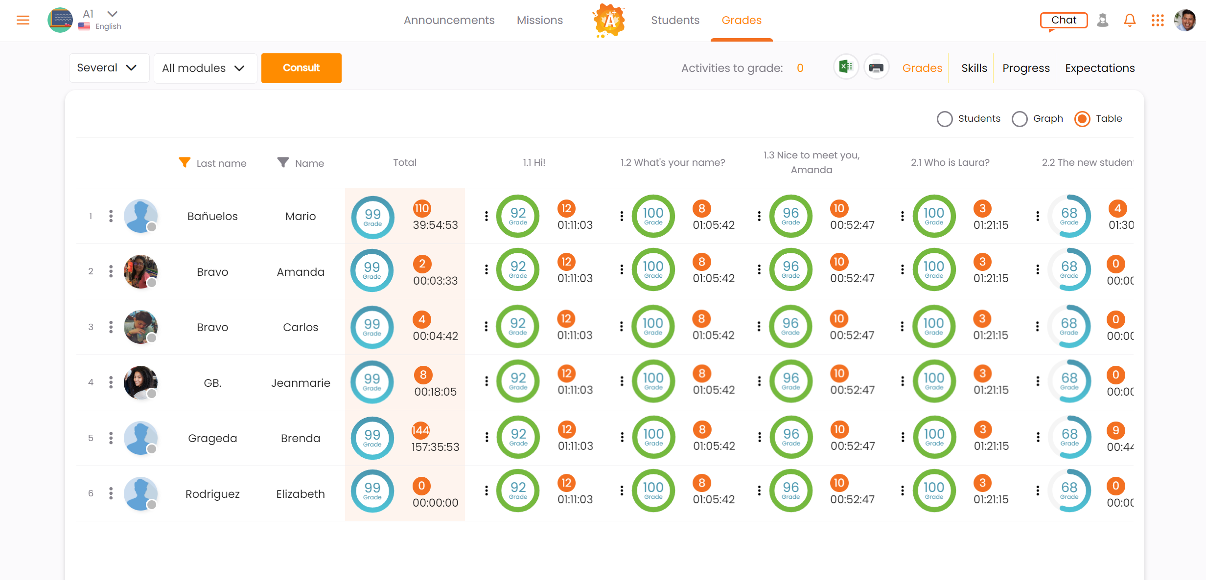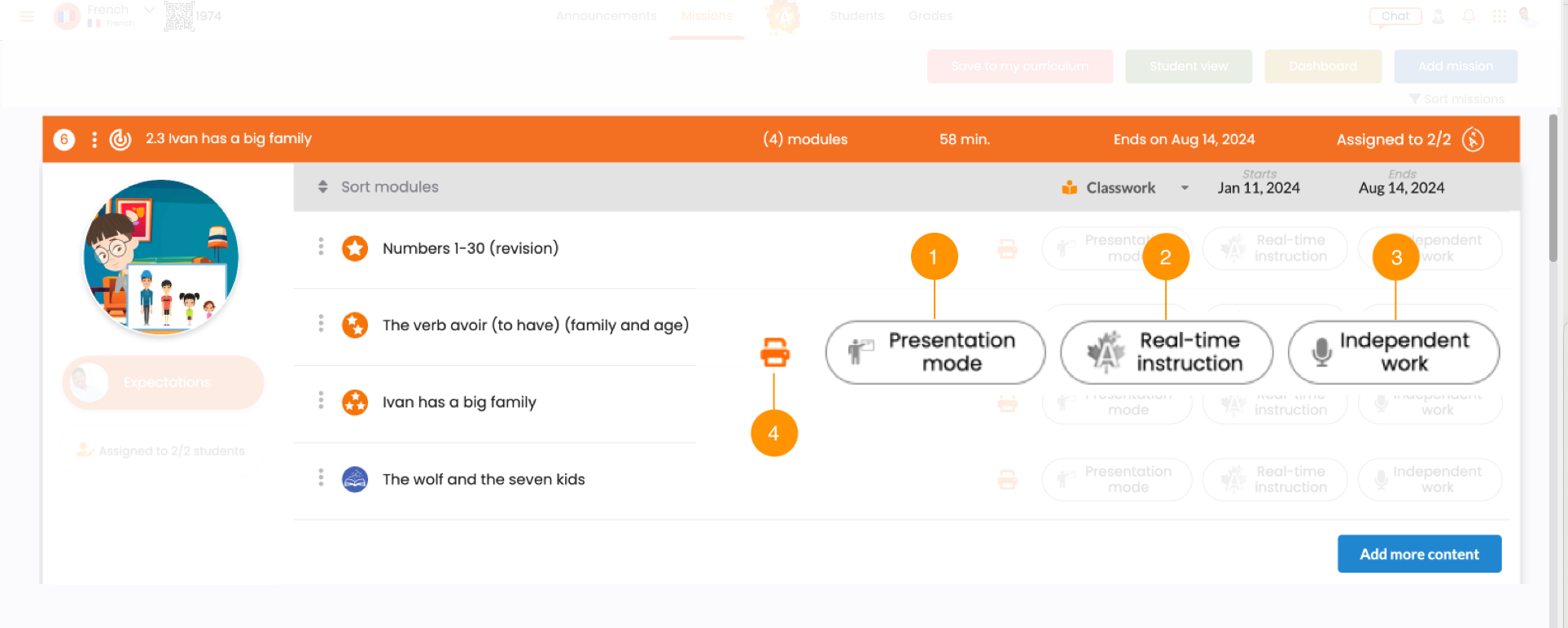 The independent work mode ensures every student gets the necessary practice in the four linguistic skills, enabling the teacher to offer personalized help and eliminate academic gaps as soon as they appear.