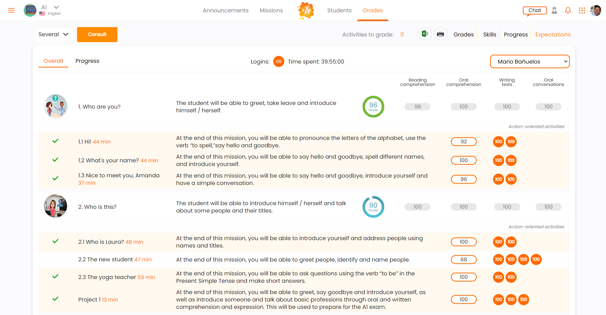Our detailed skills and expectations reports provide an accurate representation of the students’ levels and performance.